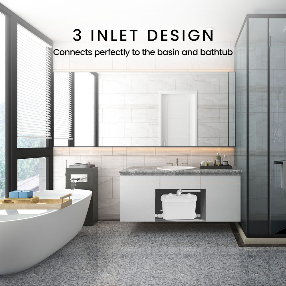 Tight spaces are no longer a concern; our pump's slim and compact design allows it to fit seamlessly in confined areas, under sinks, behind showers and next to tubs.