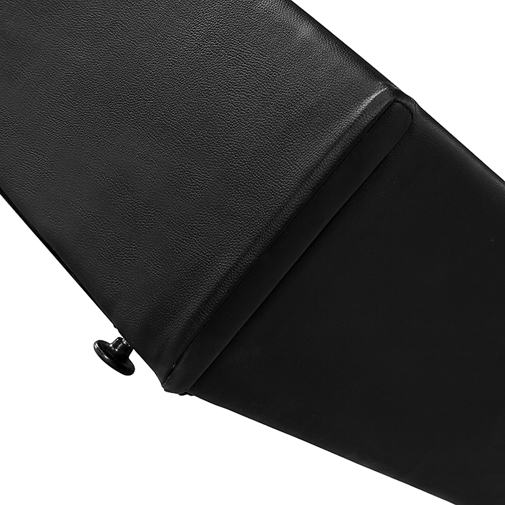 Designed for a standard-sized King mattress, this bed ensemble frame features quality craftsmanship and the finest materials. With the brilliant sheen of easy-to-maintain black PU leather and elegant stitching accents, this bed ensemble frame fits equally well with both contemporary and classic decórs.