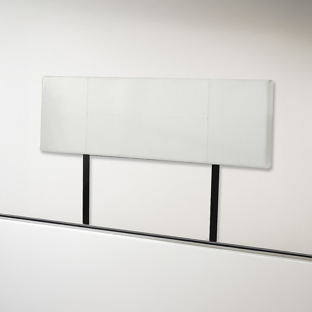 This headboard for standard King-sized bed frames is created with quality materials, including easy-to-maintain PU leather that will maintain its sophisticated look for many years to come. This particular model comes with elegant stitching accents that provide just the right level of understated pop. A neutral white will blend seamlessly with a wide variety of bed frames and other bedroom furniture.