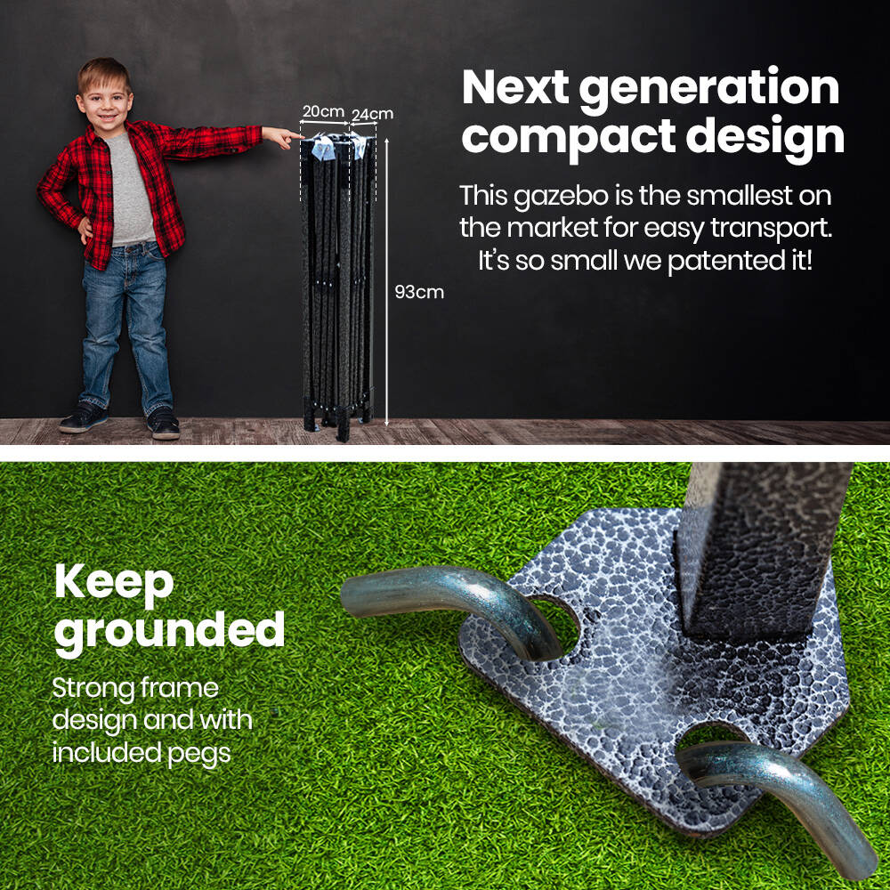 The Red Track 3.6 x 2.2m Gazebo stands out with the smallest folded size on the market—just 93cm long! This ultra-compact 12kg design makes it incredibly easy for one person to carry, transport, and store, offering unmatched convenience compared to bulkier alternatives. Whether you're short on space or always on the move, this gazebo’s design ensures portability without compromise.