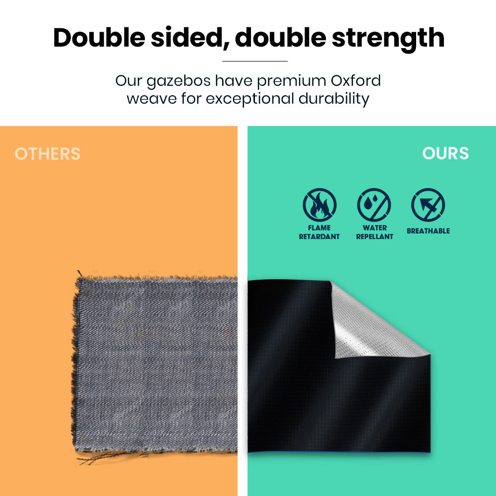 The 3x3m Gazebo (with 3 walls included) stands out with the smallest folded size on the market—just 93cm long! This ultra-compact 13kg design makes it incredibly easy for one person to carry, transport, and store, offering unmatched convenience compared to bulkier alternatives. Whether you're short on space or always on the move, this gazebo’s design ensures portability without compromise.