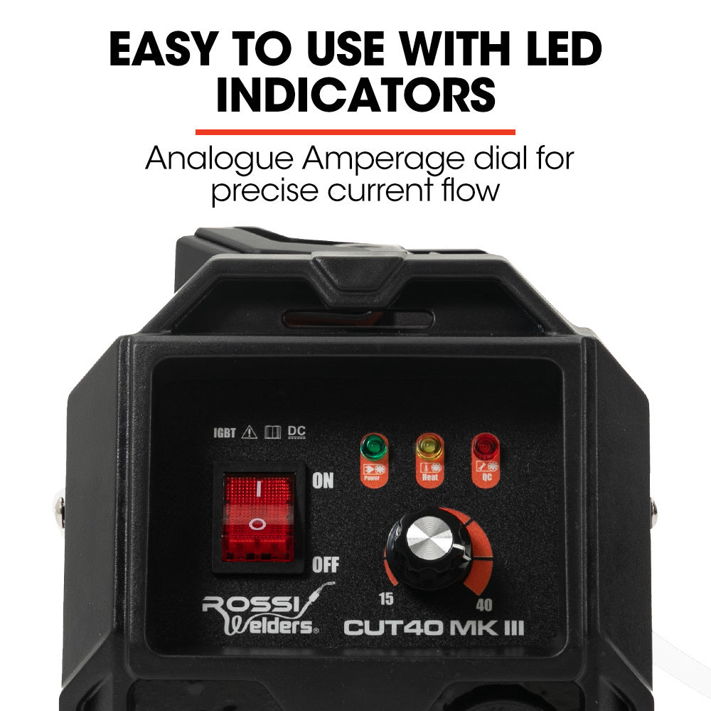 The Cut-40 Series II incorporates the latest High-Frequency Inverter technology producing the highest quality results with total reliability. it is 100% generator friendly* with its ACC (automatic current compensation) and IGBT Transistor Technology (transistor bridge technology) gives continuous current rectification for improved efficiency with power conversion. 's IGBT Transistor Technology allows for even longer run times and improved duty-cycle within a more compact and reliable unit.