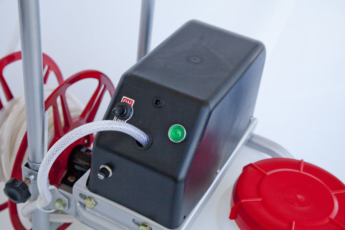 Complete electric sprayer kit with Battery, Pump, Hose Reel, Tank and Trolley