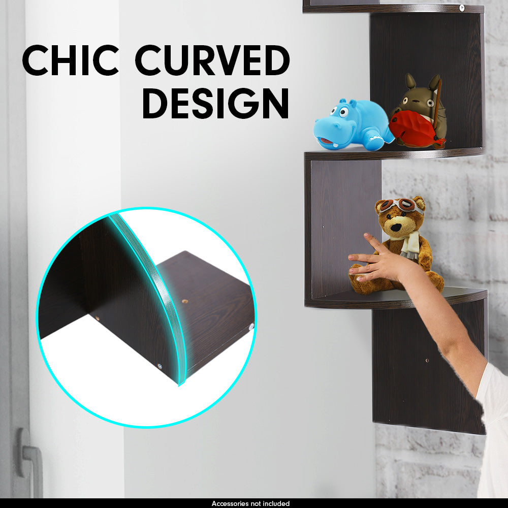 5 Tier Corner Wall Shelf Display Shelves Dvd Book Storage Rack Floating Mounted - Dark Brown
