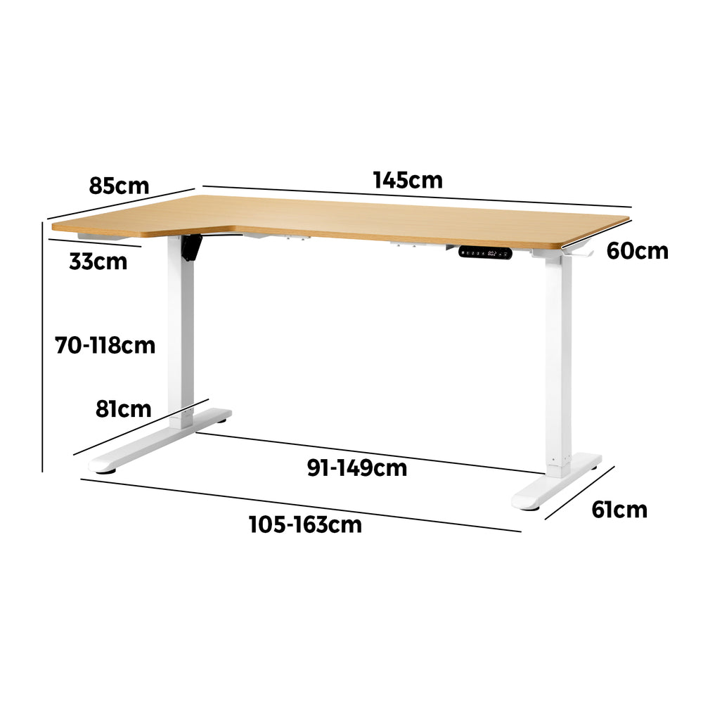The spacious 1.45m length L-shaped oak-coloured desktop is designed to match the white frame perfectly with all installation holes pre-drilled and factory-aligned for an easy fit. Plus, the 18mm thick desktop is made of eco-friendly and non-toxic particle board and given an anti-scratch matt finish that feels absolutely smooth and easy to clean and maintain. The rounded corners ensure no nasty bumps and safe working conditions all around.