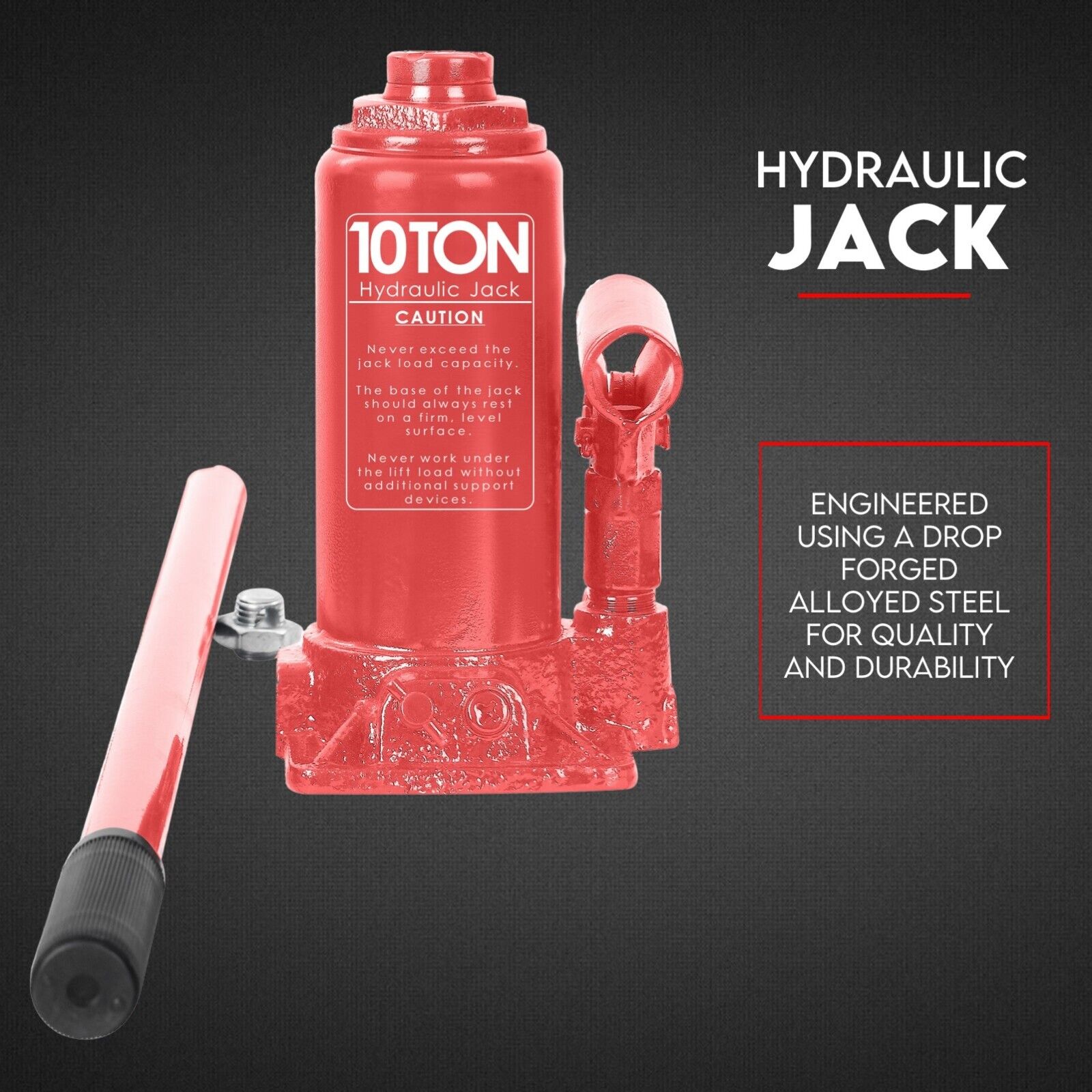 The heavy-duty steel H-frame hydraulic garage/shop floor press is designed for straightening, bending, pressing bearings, installing bearings and stamping. The hydraulic cylinder is equipped with a 10-ton capacity bottle jack.