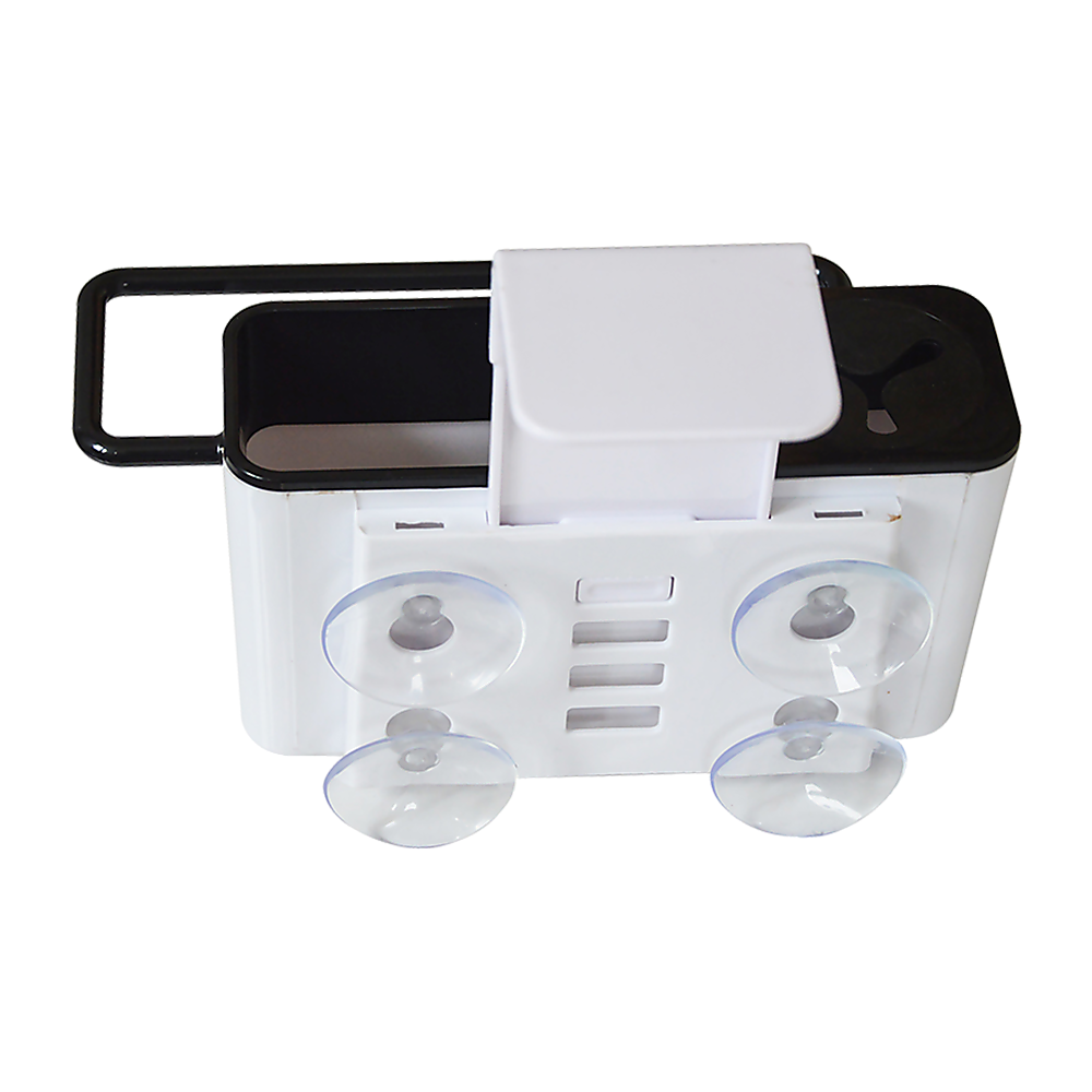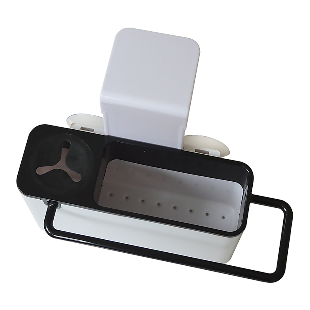 Want in-sink storage that will blend in beautifully with your stainless steel kitchen sink? This white & black self-draining sink tidy by Randy & Travis Machinery is the perfect organiser for your kitchen. With a rubber dish brush grip, a sponge draining compartment, and a hanging rail for your dishcloth, this handy caddy will become your best friend come clean-up time after meals.