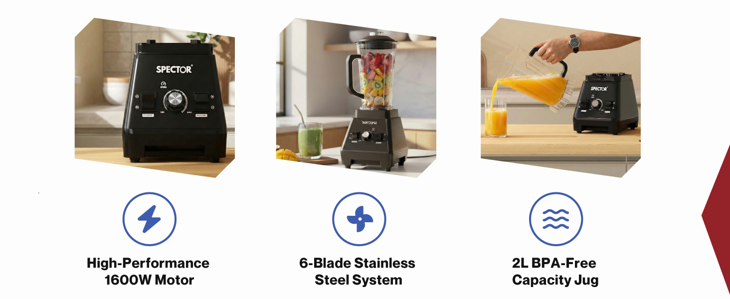 Introduction Revolutionize your kitchen routine with the Spector Commercial Blender. Designed for both durability and high performance, this dynamic mixer brings professional-grade processing to your countertop. From pulverizing ice for cocktails to making nut butters or silky soups, it handles every task with precision. Safe, intuitive, and powerful, it is the essential appliance for anyone seeking a healthier, more efficient way to cook.