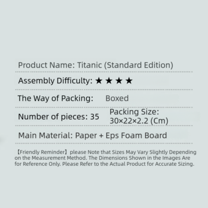 Embark on a creative journey with our 3D Titanic ship model puzzle. This engaging DIY kit allows you to construct a stunning replica of the famous ocean liner, offering hours of fun, intellectual challenge, and a fantastic display piece once completed. Available in two different levels of detail and size.