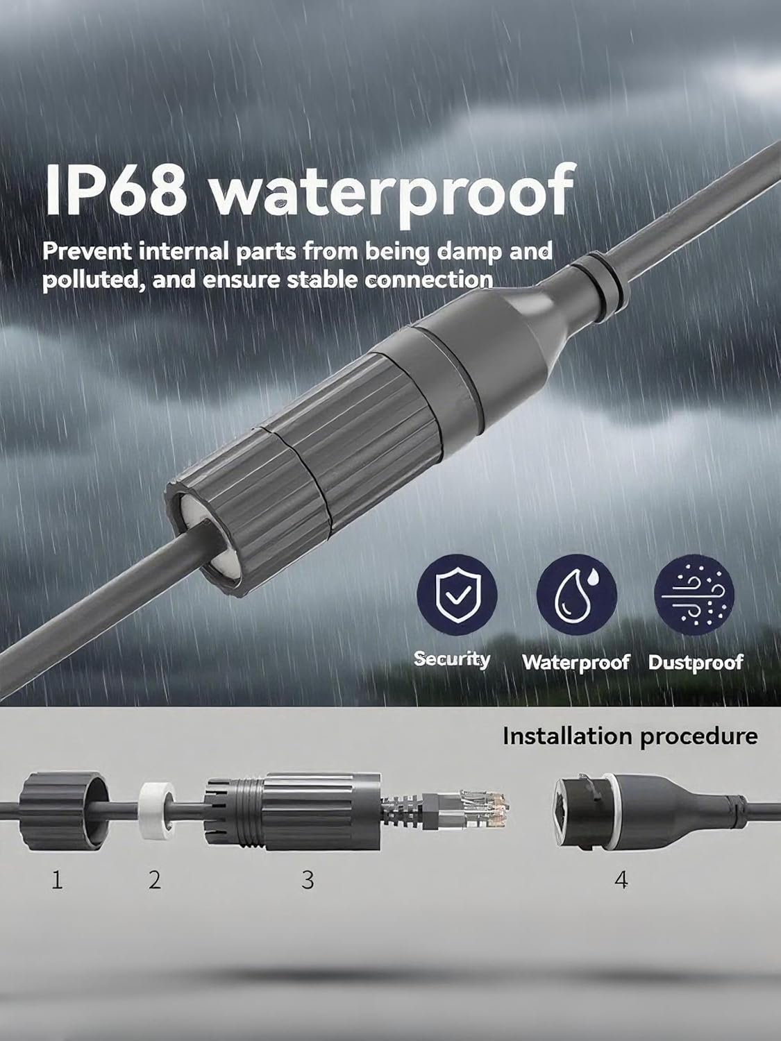 • IP67 Waterproof Dustproof, Indoor Outdoor Ready: The adapter and connectors feature IP67-rated protection, effectively resisting rain, dust, and harsh outdoor conditions. It keeps your network running reliably indoors or outside, and stands up to demanding environments such as outdoor, RV, or marine use.