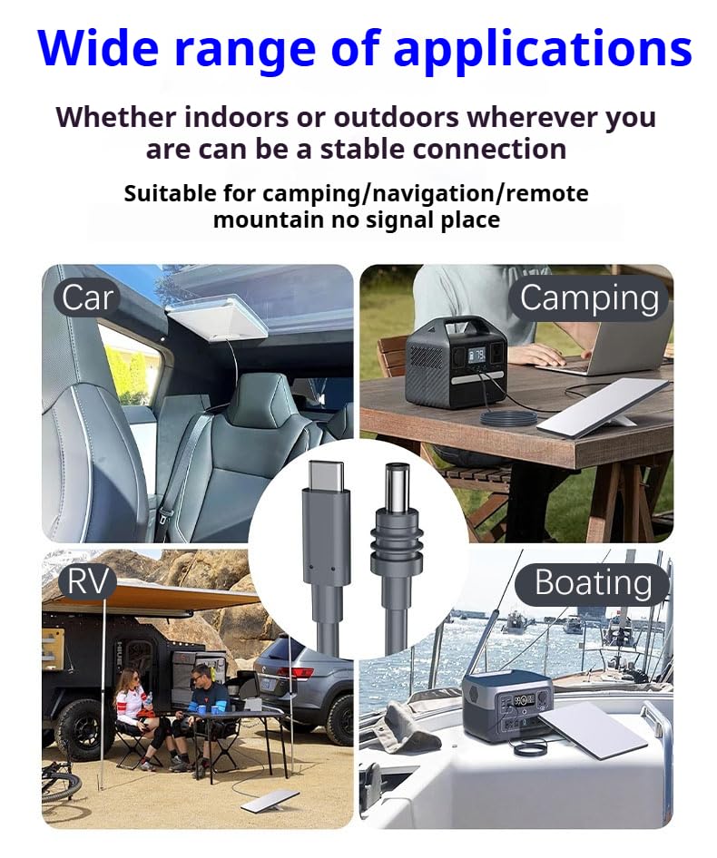 • Designed for Starlink Mini: This USB-C to DC power cable is specially designed to power the Starlink Mini via a USB-C PD power source. Built with original-grade quality and 18AWG premium wiring, it ensures optimal power transmission, minimizes energy loss, and enhances durabilitydelivering stable power to your Starlink Mini dish. No extra adapter box is needed; its simple, plug-and-play, and ideal for road trips and RV use.