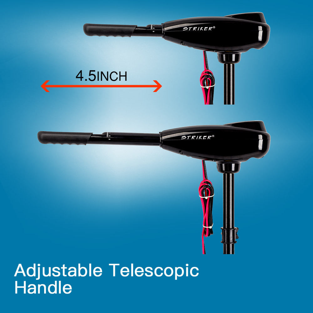 With super-low power consumption, the Genuine Striker gets the most out of your 12V battery. And thanks to its clear LED display, you will always be in control of the power. Suitable for small water crafts such as inflatable boats, canoes and aluminum fishing boats, refer to the below graph for boat size.Simply twist the handle and sneak up on the fish at the optimal speed. With five forward speeds and three reverse speeds, you'll make the right approach every time.