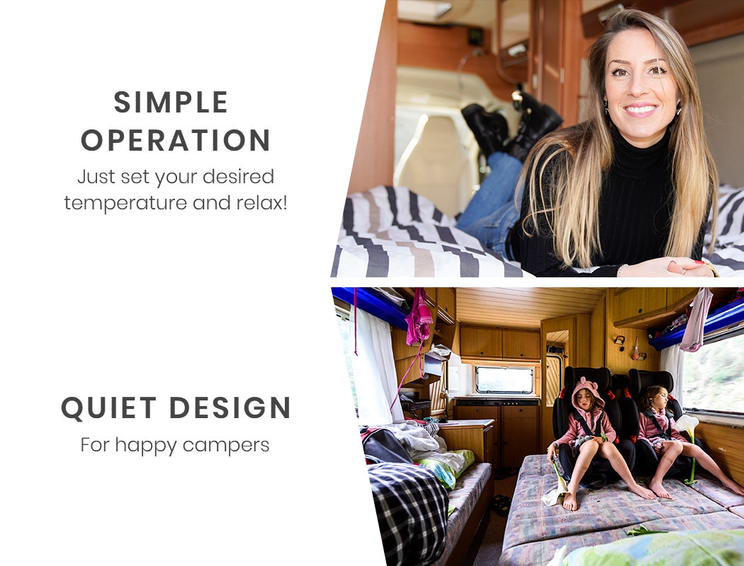 The Thermomate offers powerful, efficient performance thanks to a unique heatsink design that is cast from premium 1050 grade aluminum offering superior thermal conductivity. Whether you're in a caravan, motorhome, camper trailer, truck or boat your space will be toasty in no time, and any frost on windows will quickly disappear. Once the target temperature is reached, the Thermomate is surprisingly quiet, so you'll have happy campers and everyone will enjoy a good night's sleep.