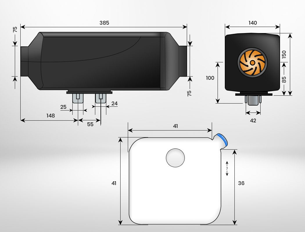 The compact design allows for easy and space-saving installation within the interior, or even under the floor of vehicles. The Thermomate Diesel Heater comes complete with all accessories you need, making it possible for anyone handy to install. Make the smart investment in your comfort and trust Thermomate for your portable heating needs.