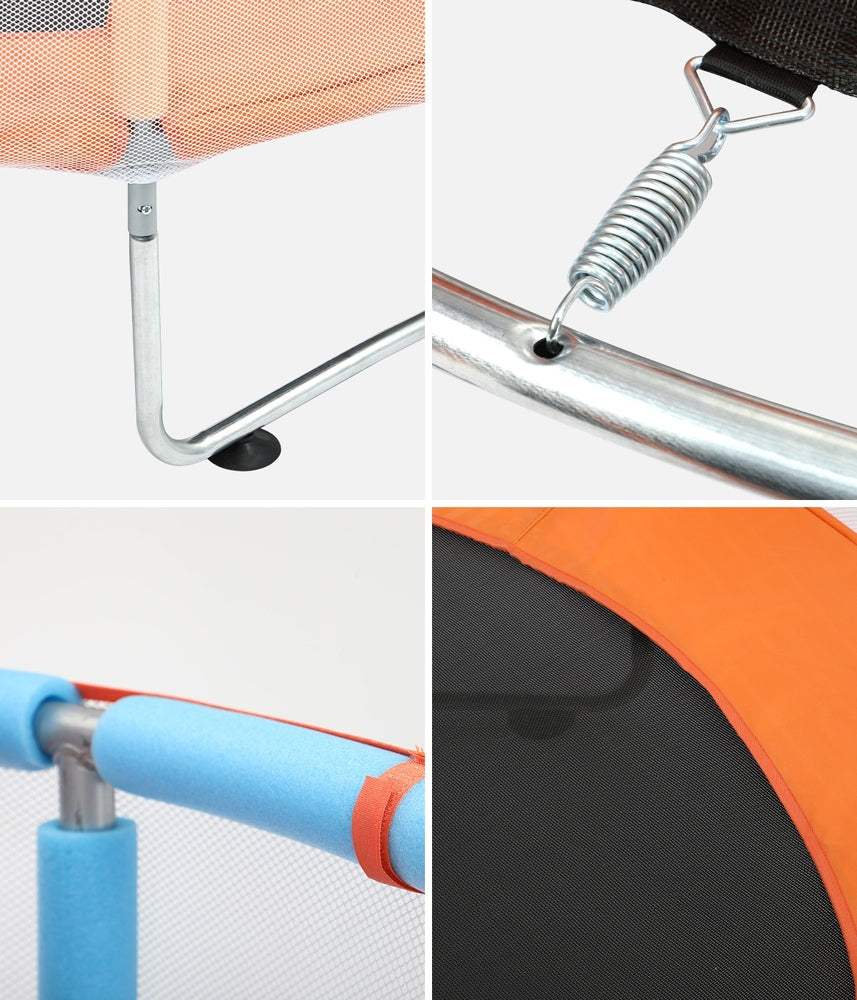 Designed to be used indoors or outdoors, our trampoline is built to exacting standards of weather durability and long-lasting strength to handle all the robust jumps, bounces, hops, skips and turns without ever flinching or wavering. Plus, it also comes with a handlebar for easy gripping during all the happy play!