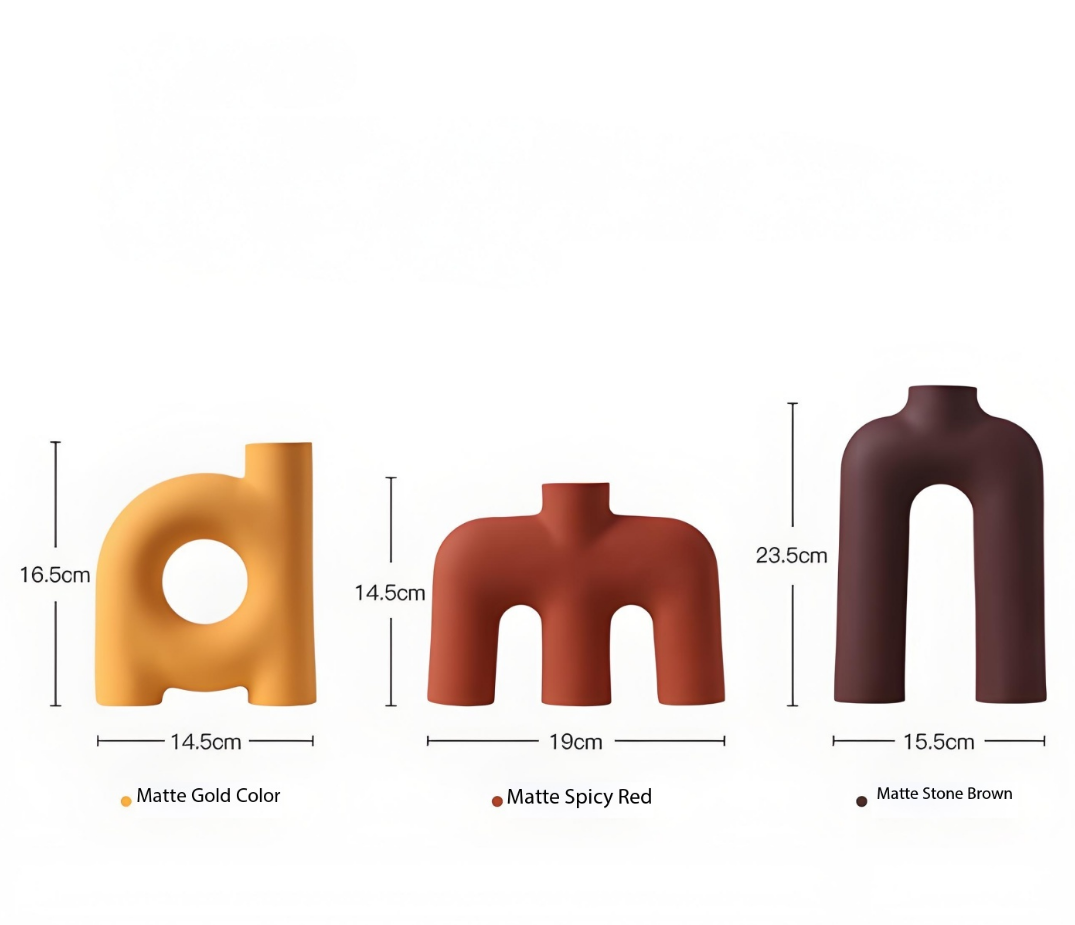 Crafted from premium ceramic with a sleek, matte finish, each vase features a hollow, tube-like letter silhouette that adds artistic depth to any space. The varied sizes of the three vases allow for layered styling: the smallest is perfect for single dried eucalyptus stems or tiny fresh blooms, the medium suits compact bouquets of tulips or daisies, and the largest anchors statement arrangements of pampas grass or long-stemmed roses. Whether clustered as a dining table centerpiece, spread across a living room shelf, or positioned as a TV stand accent, the set complements minimalist, Scandinavian, and industrial decor schemes seamlessly, infusing spaces with subtle personality without cluttering existing aesthetics.