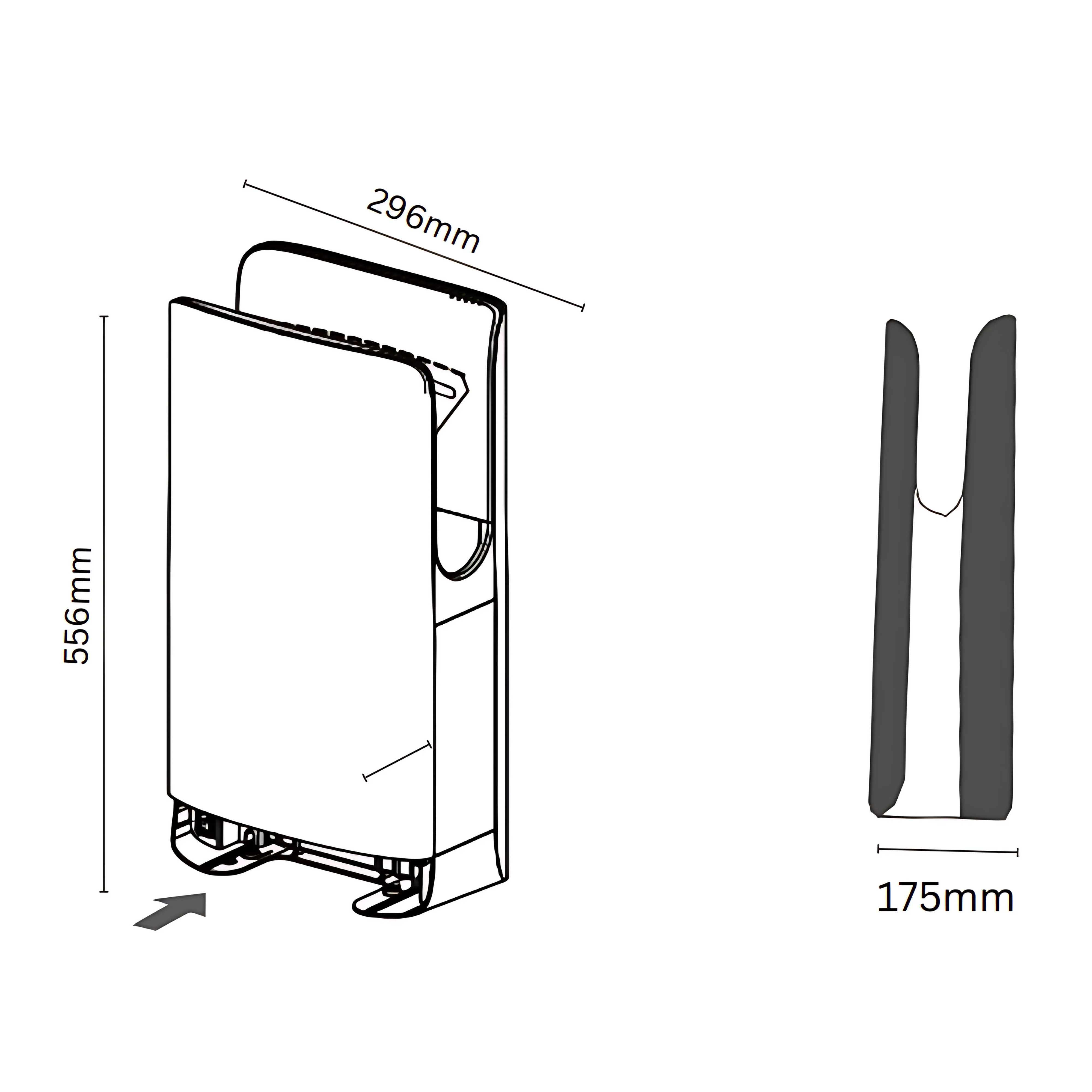Experience quick-drying efficiency with the Dolphy Ultra Compact Jet Hand Dryer – a blend of technology and elegance. Its sleek design enhances any space, offering both practicality and style. Elevate your restroom experience and be praised for your commitment to hygiene and aesthetics. It can be hard-wired by an electrician or used with the provided cord and plug.