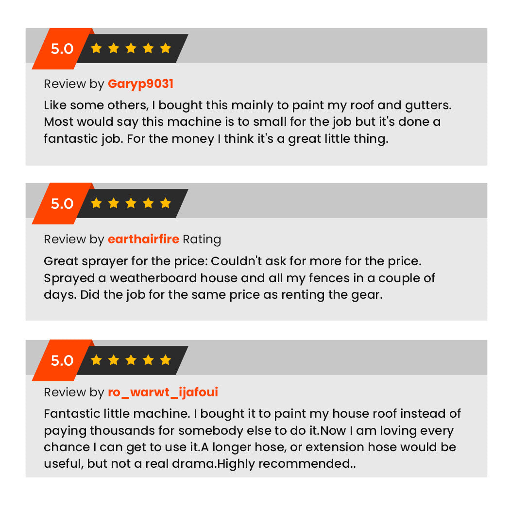 The 740W Airless paint sprayer features professional grade accessories. The all metal spray gun produces a perfect coating and withstands long-term wear and tear. Its massive 7.5m high pressure hose coupled with the BONUS nozzle extension wand means you can get paint anywhere you need it. Not to mention the paint pressure regulator, and quality mesh paint filter, all of which work together to ensure that your coatings are applied to a flawless professional standard!
