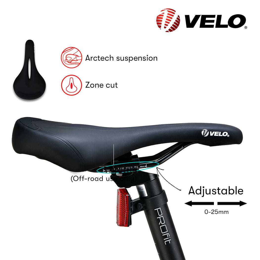 The MX7 series e-MTB comes equipped with Shimano 7-speed SIS-Index gears and derailleur, and a high performance VELO saddle. Front and rear disc brakes and low-profile dual rubber compound 27.5 Maxxis Pace tyres offer serious control.