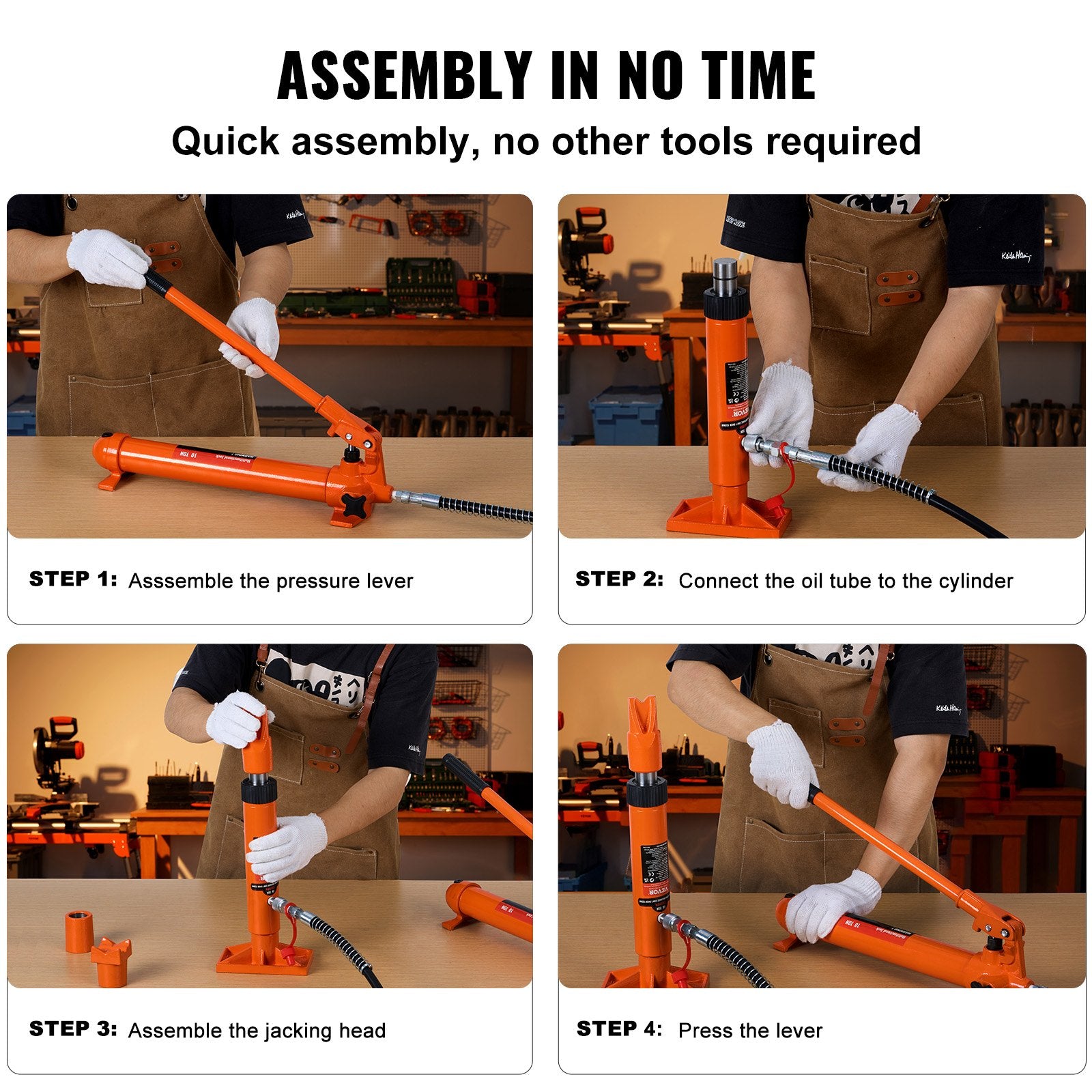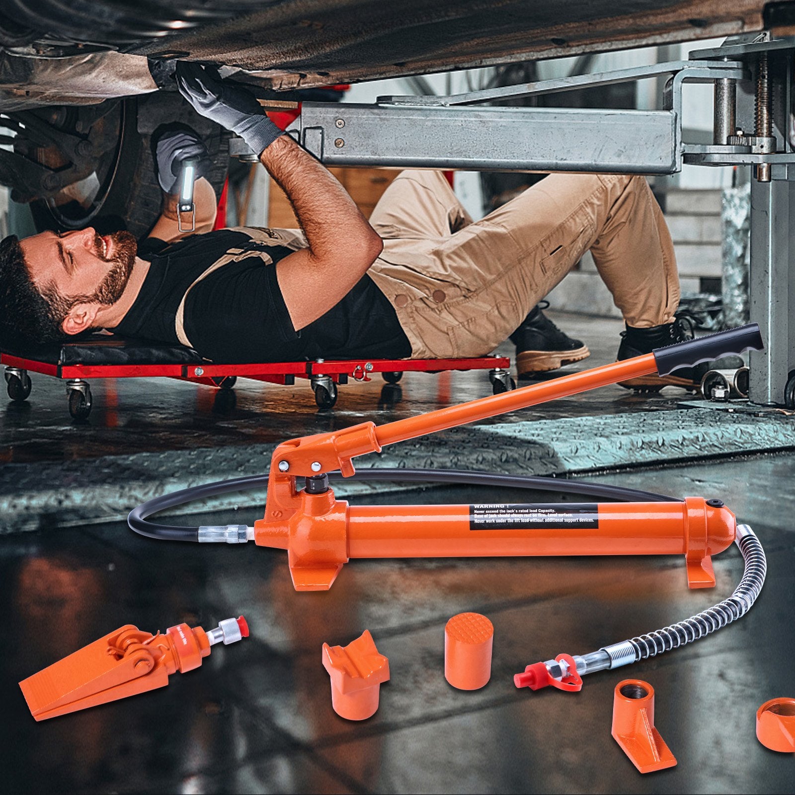 The whole hydraulic jack body tool kit is compact and complete for the best working performance. The portable case is included for easy storage. You can carry the tool kit more easily.