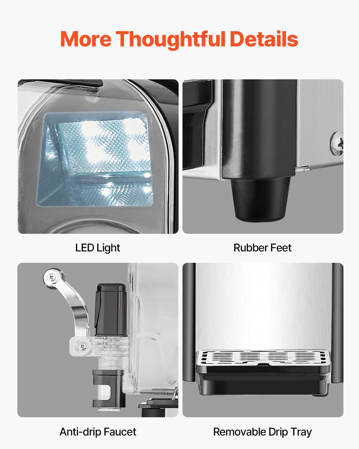 Made with a stainless steel body and food-grade PC tank, this slushie machine is built to last and easy to clean. The tank features one-button automatic cleaning, and the modular components can be easily disassembled without tools for hassle-free maintenance and cleaning.