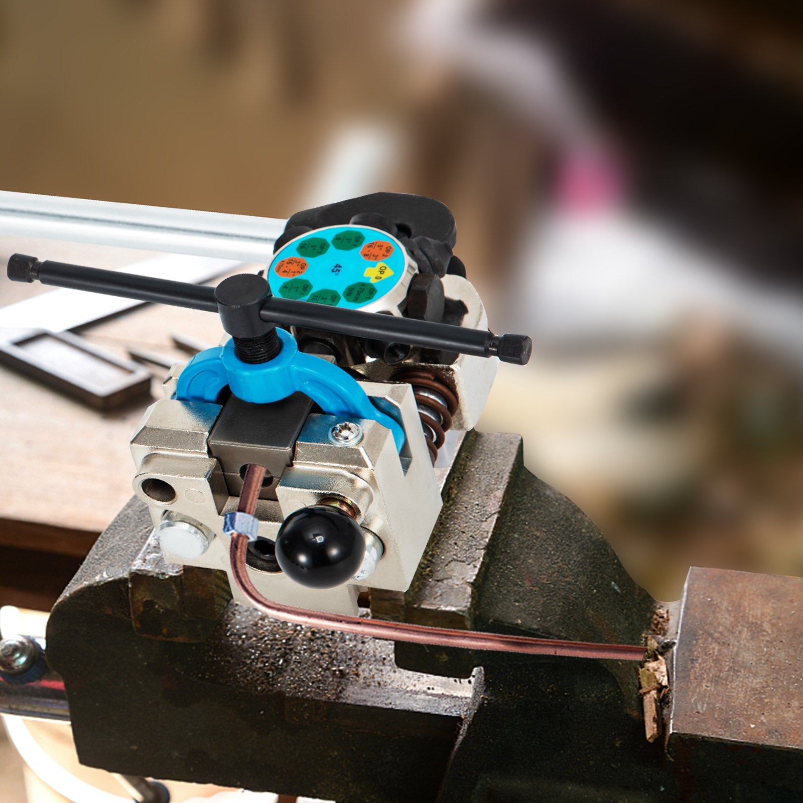 The brake line flare tool is compatible with a bench-mounted vise in your workshop or on a hitch-mounted vise in the field (not intended for use under a car). The 6.3-inch (16 cm) T-handle screw clamp can hold the die and tube in place firmly without vibration. After repairing, your vehicle will be driving smoother. Get ready to feel the difference.