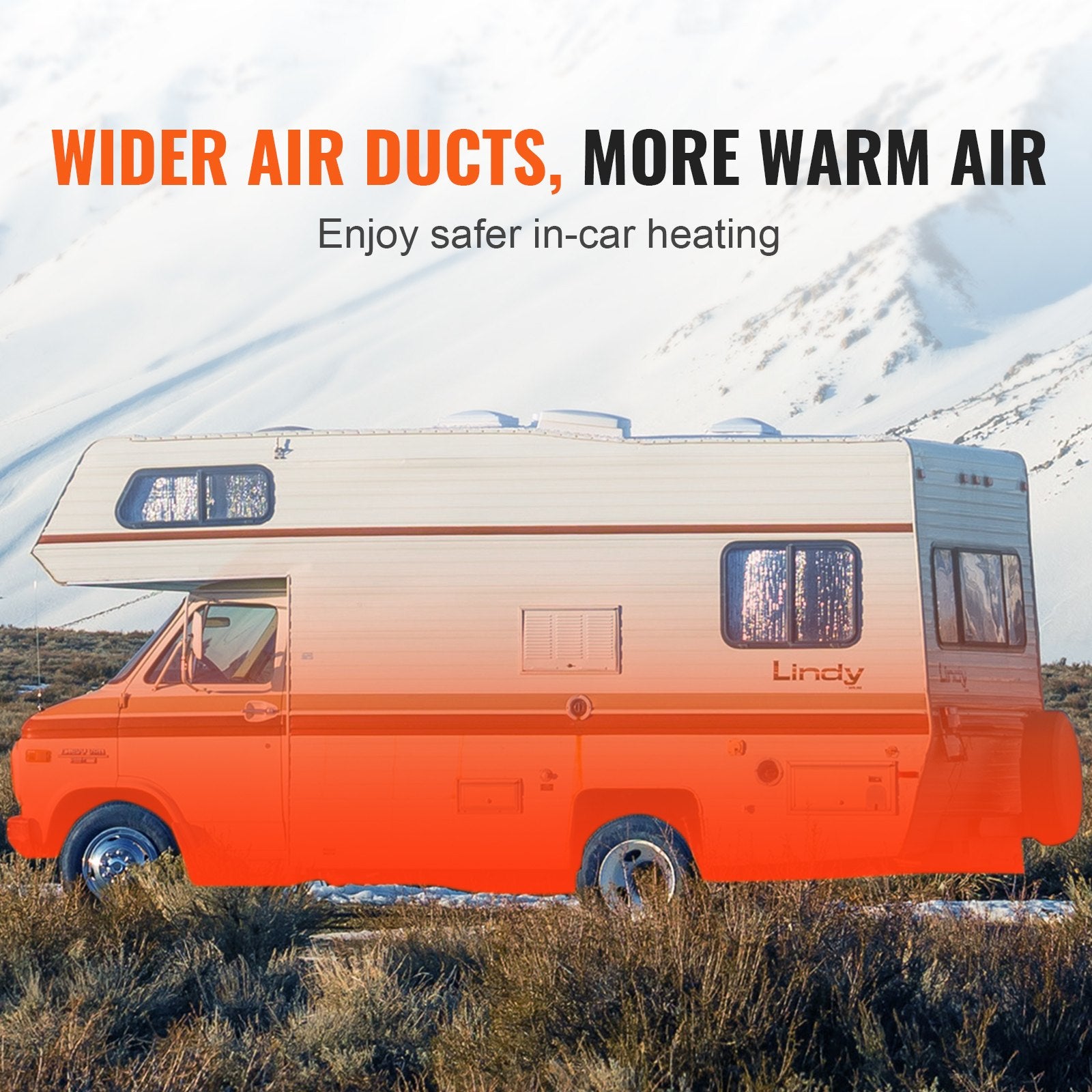 Suitable for 2KW/5KW/8KW diesel heaters, including split type and all-in-one type. The diesel heater hose duct kit includes 1 exhaust pipe, 2 outlet ducts, 4 outlet duct clamps, 2 exhaust pipe clamps, 2 air vent connectors, and 1 tee connector for comprehensive installation needs.