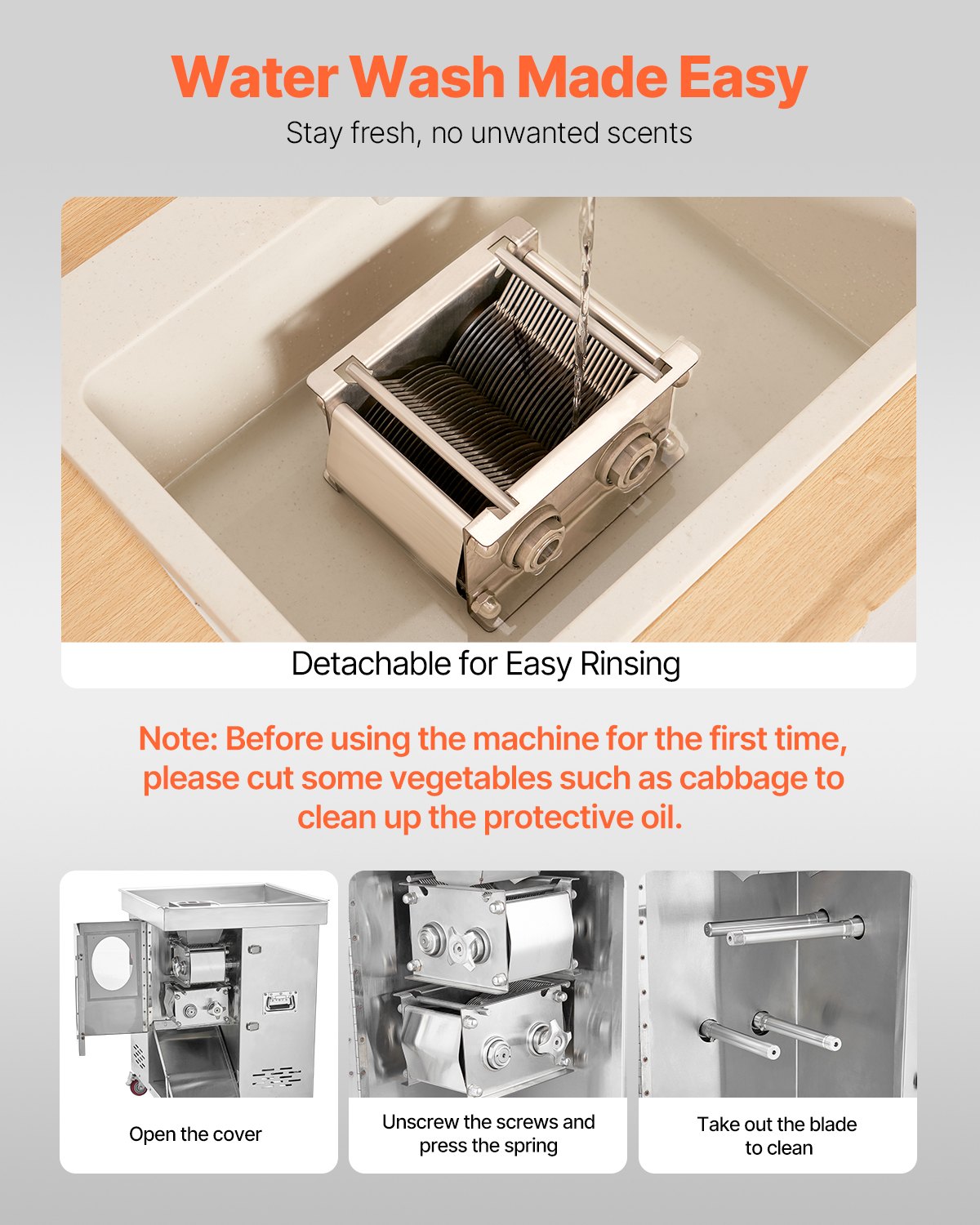 Crafted with high-quality stainless steel, this meat cutting machine resists rust and lasts longer. The anti-slip rubber base helps keep it steady, making it a go-to tool for small businesses, farmer's markets, restaurants, home kitchens, and more.