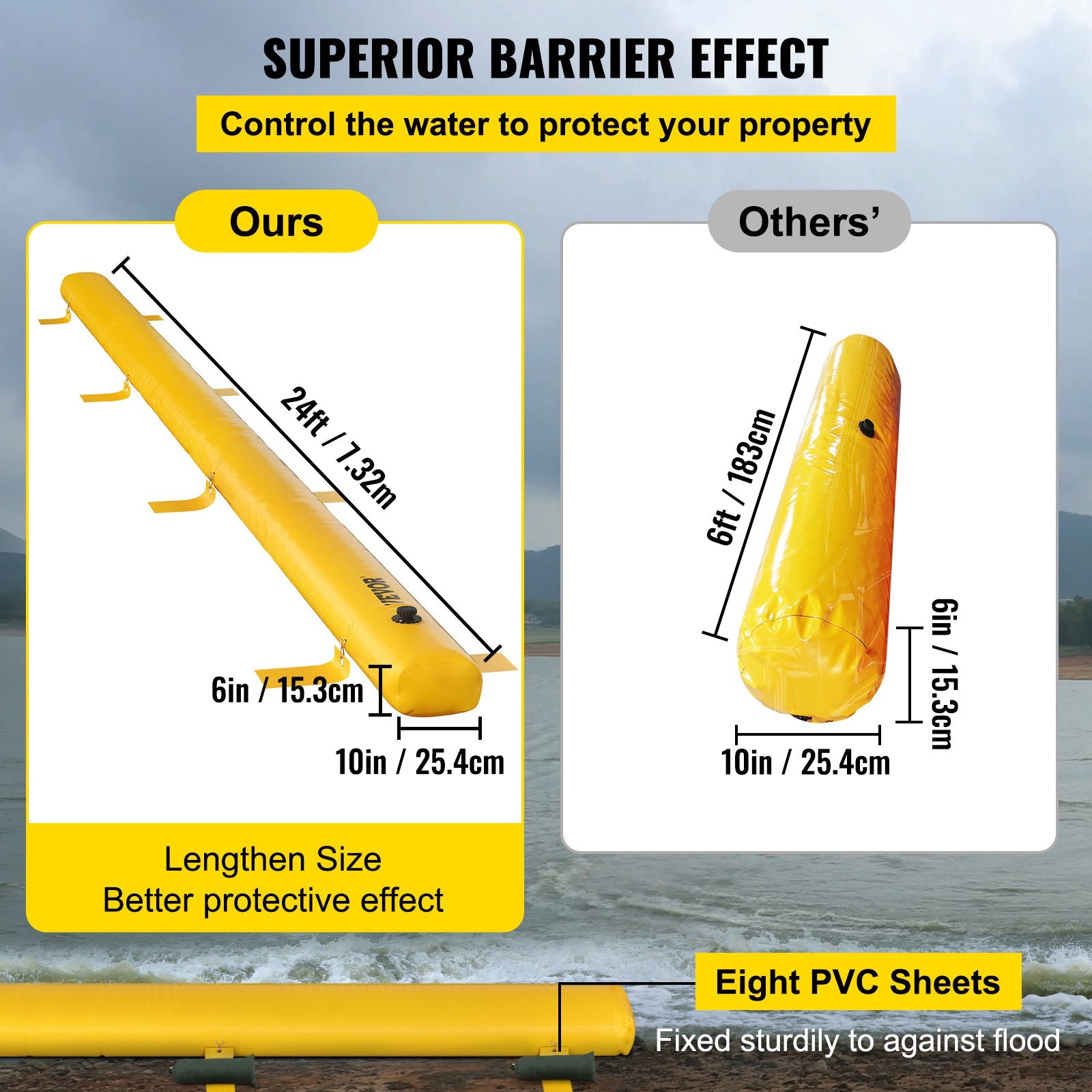 Net Weight: 15.4 pounds. The water barrier is portable and foldable, convenient for storage and transportation. Please be attentive to draining away the water before storing it. Flood barriers need to be used away from sharp objects and stored in cool and dry places.