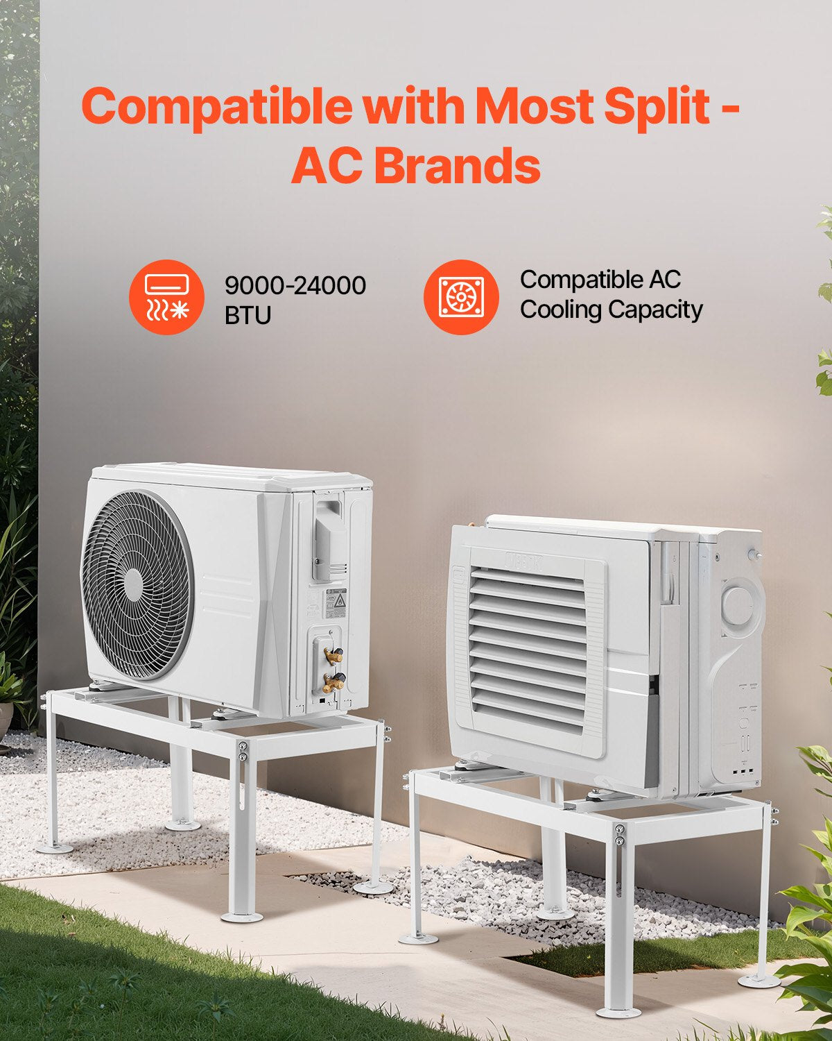Equipped with anti-vibration rubber pads, this AC stand reduces noise and vibrations during operation, creating a quieter condition while securing the outdoor unit from potential falls