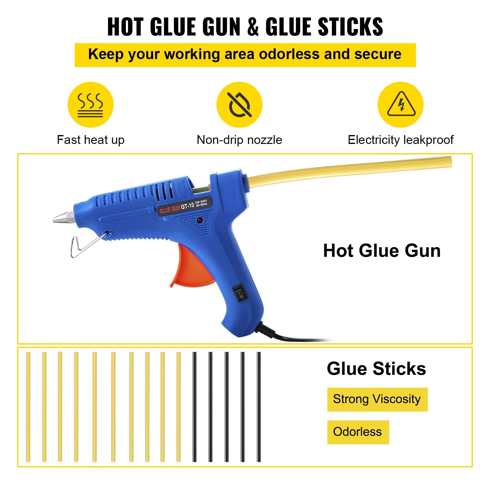 Our hot glue gun has the features of rapid heating and a drip-proof nozzle, which can heat and release glue without a drop in 3-5 minutes. 15 pcs of glue sticks dry out quickly and promote a firm hold that can withstand resistance. The hot glue gun and glue sticks can not only be used for repairing cars, but you can also use them to prepare your arts and crafts project, seal your packages, fix buttons, decorate and even repair your everyday household items.