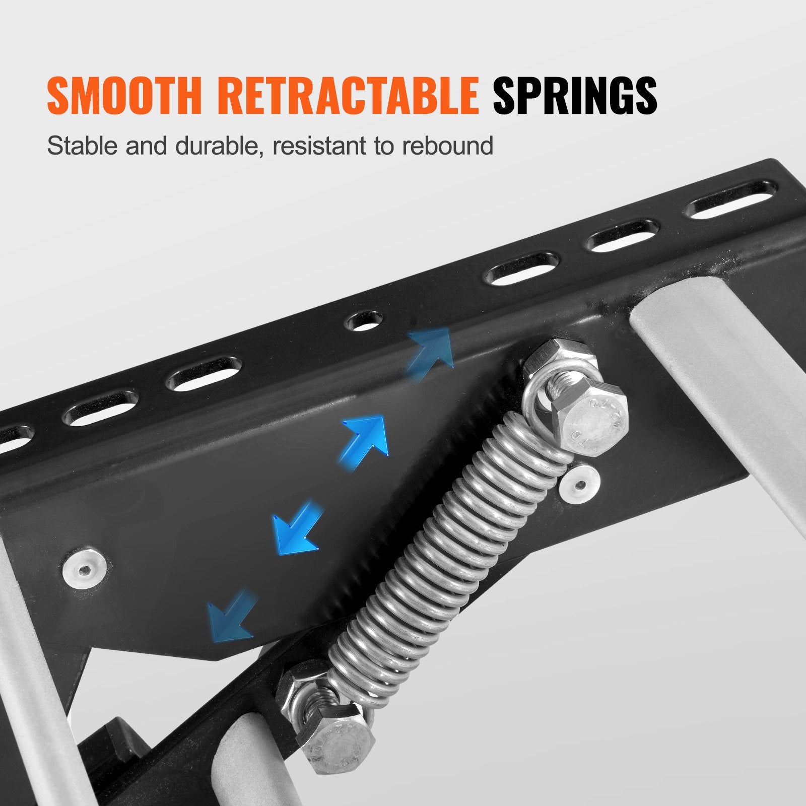 Constructed with heavy-duty and durable metal materials, this RV Steps can support up to 440 lbs / 199.58 kg, allowing two people to enter and exit the RV simultaneously without deformation or damage. High-quality springs ensure stable unfolding and folding without rebounding.