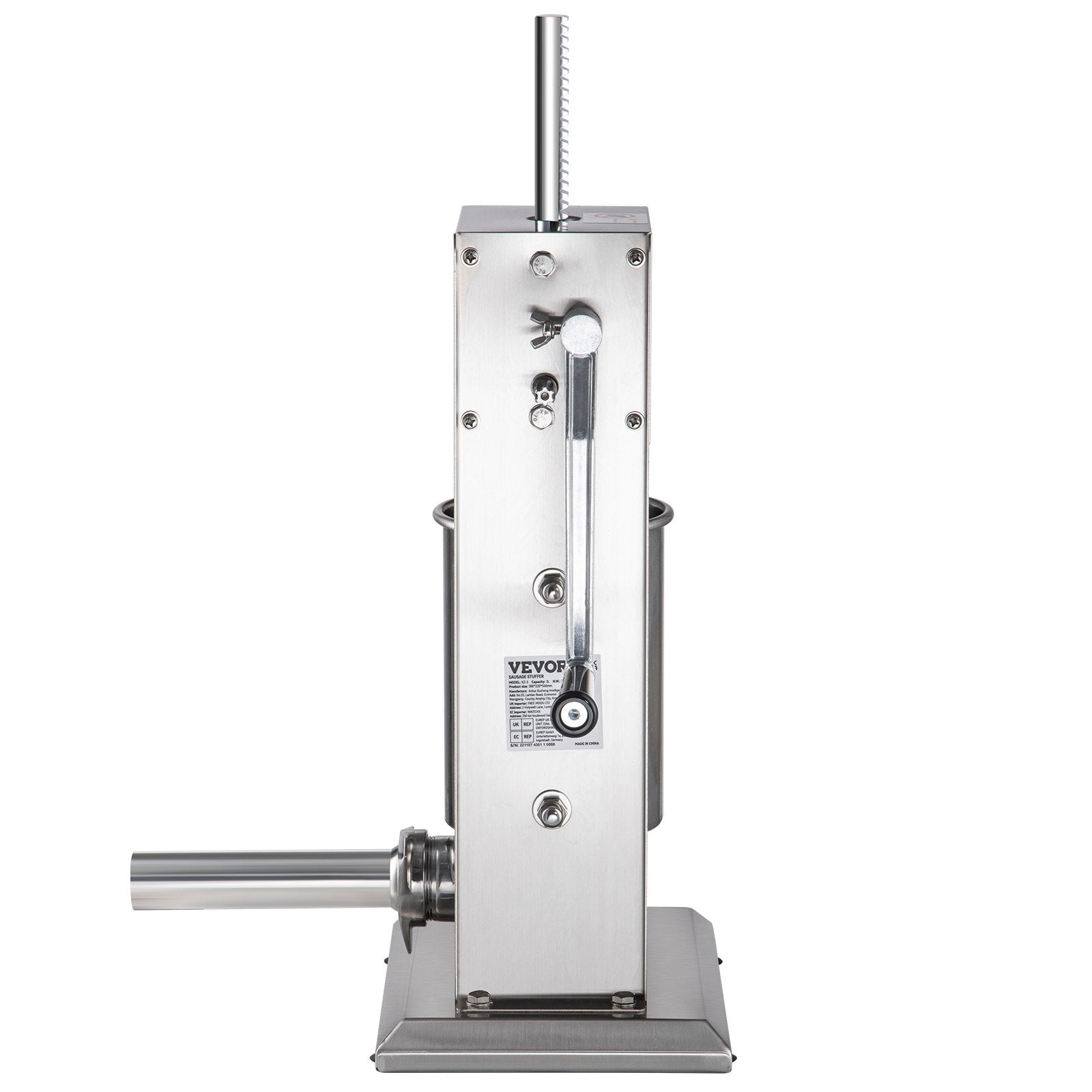 This vertical sausage stuffer comes with four stainless steel stuffing tubes (Inner Diameter: 14mm, 20mm, 30mm, 36mm ; Outer Diameter: 16mm, 22mm, 32mm, 38mm) and fried dough sticks, meeting different size requirements to make thin Italian fine sausages, flavored salami, or thicker meat sausages.