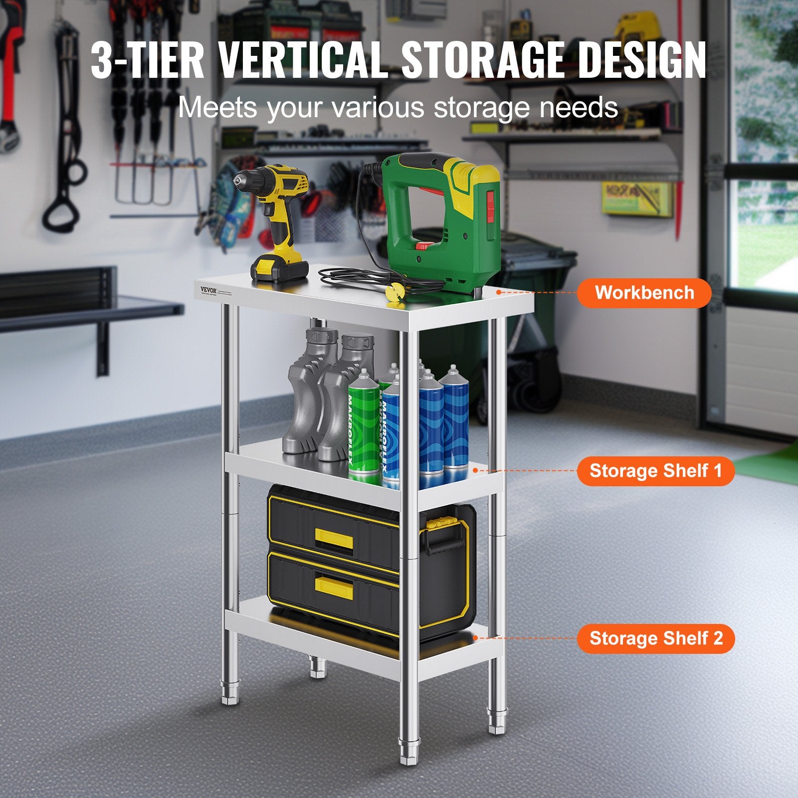 The 3-tier design offers ample storage space, allowing you to make the most of your storage needs. With adjustable shelves, you can easily raise or lower the height by adjusting the screws to fit the size of the items you need to store.