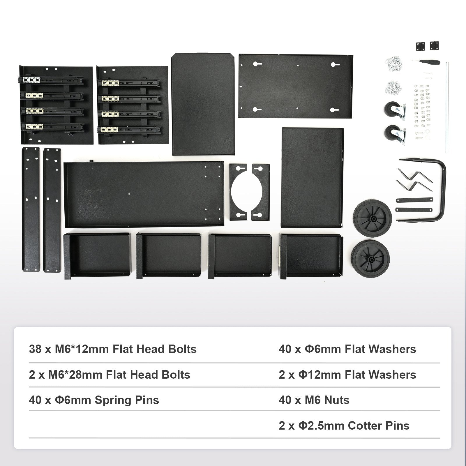 Large 2-tier MIG welder cart can effortlessly accommodate welding caps, welding machines, gas cylinders, welding guns, tools, and more, with 4 practical drawers for neat and organized storage of your items. 2 multi-functional brackets on the sides can hold welding guns, welding pliers, and other tools. Keep your welding tool within arm's reach and well tidy your space with VEVOR.