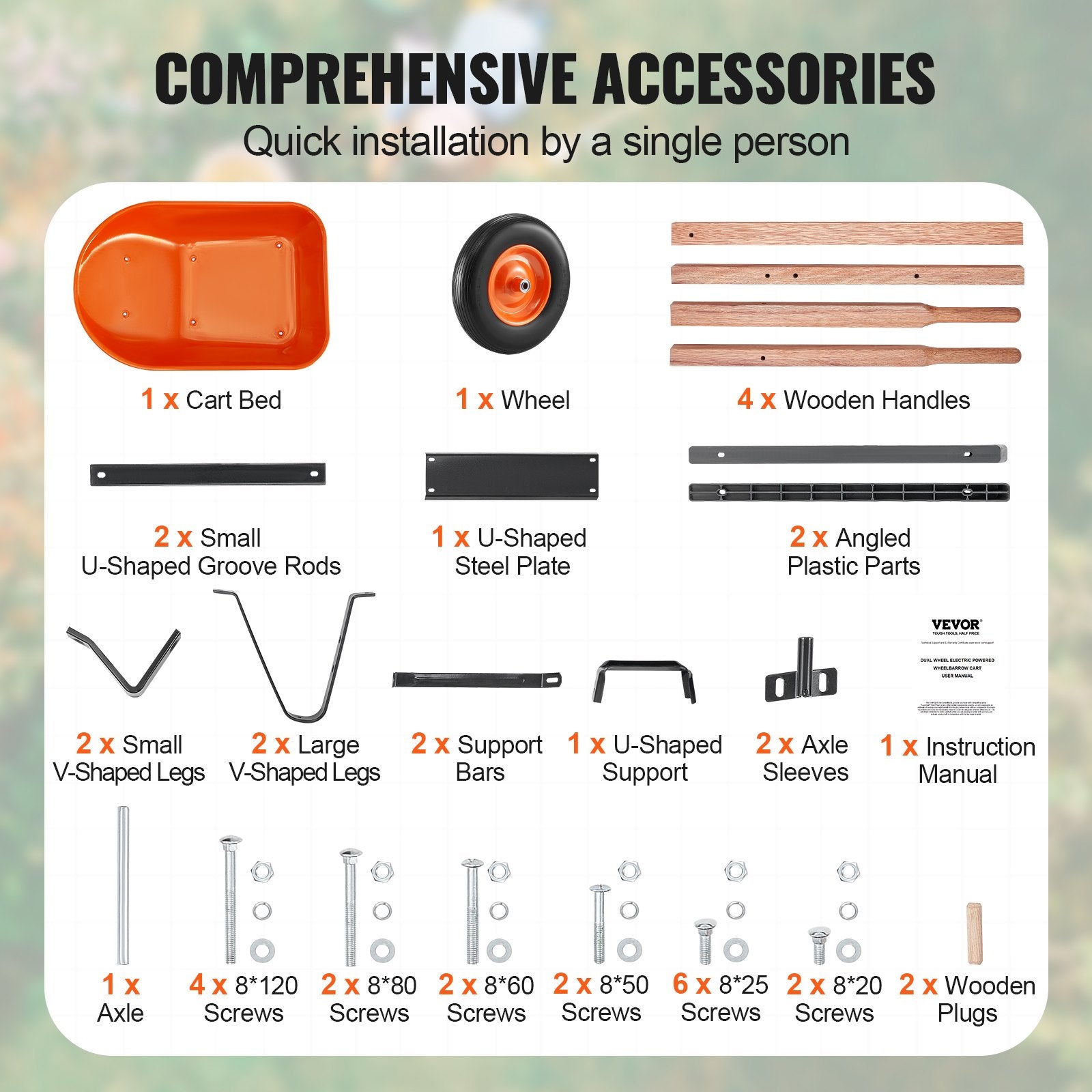 Equipped with a detailed instruction guide and a complete screw kit, this garden dump cart can be assembled quickly using simple tools like a wrench and screwdriver (tools not included).