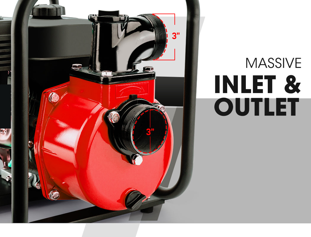 The New 8HP 3 Inch High Flow Petrol Water Pump has landed and is already becoming the most demanded portable pump solution by Aussies and Kiwis alike! This water pump series will provide outstanding performance for general water pumping applications. Whether it's for applications such as heavy duty cleaning, irrigating the garden or pumping out a flooded cellar, you'll be amazed with the versatility and performance of the 8HP Petrol Water Pump.