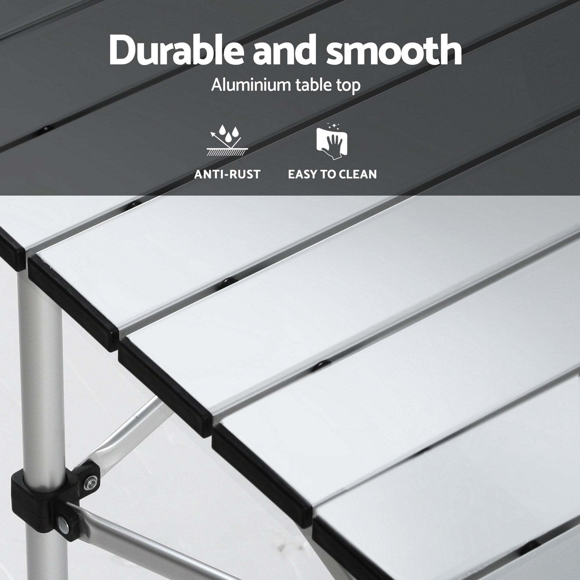 Smart Material Mix: Lightweight aluminium table top for easy carrying; sturdy steel chair frames for maximum support.