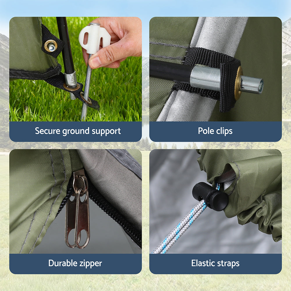 Designed for convenience and versatility, it easily attaches to the rear of your vehicle, expanding your living space and providing quick access to your gear. Crafted from water-resistant Oxford fabric with UV protection, it keeps you sheltered from sun, rain, and wind. The sturdy poles ensure a stable, long-lasting setup, while double-sided zippers on every opening allow effortless entry and enhanced airflow when rolled up. Thoughtfully designed with built-in storage pockets, it keeps your essentials neatly organized. Enjoy extra comfort and freedom on your next road trip or outdoor adventure with the Weisshorn Car Camping Tent.