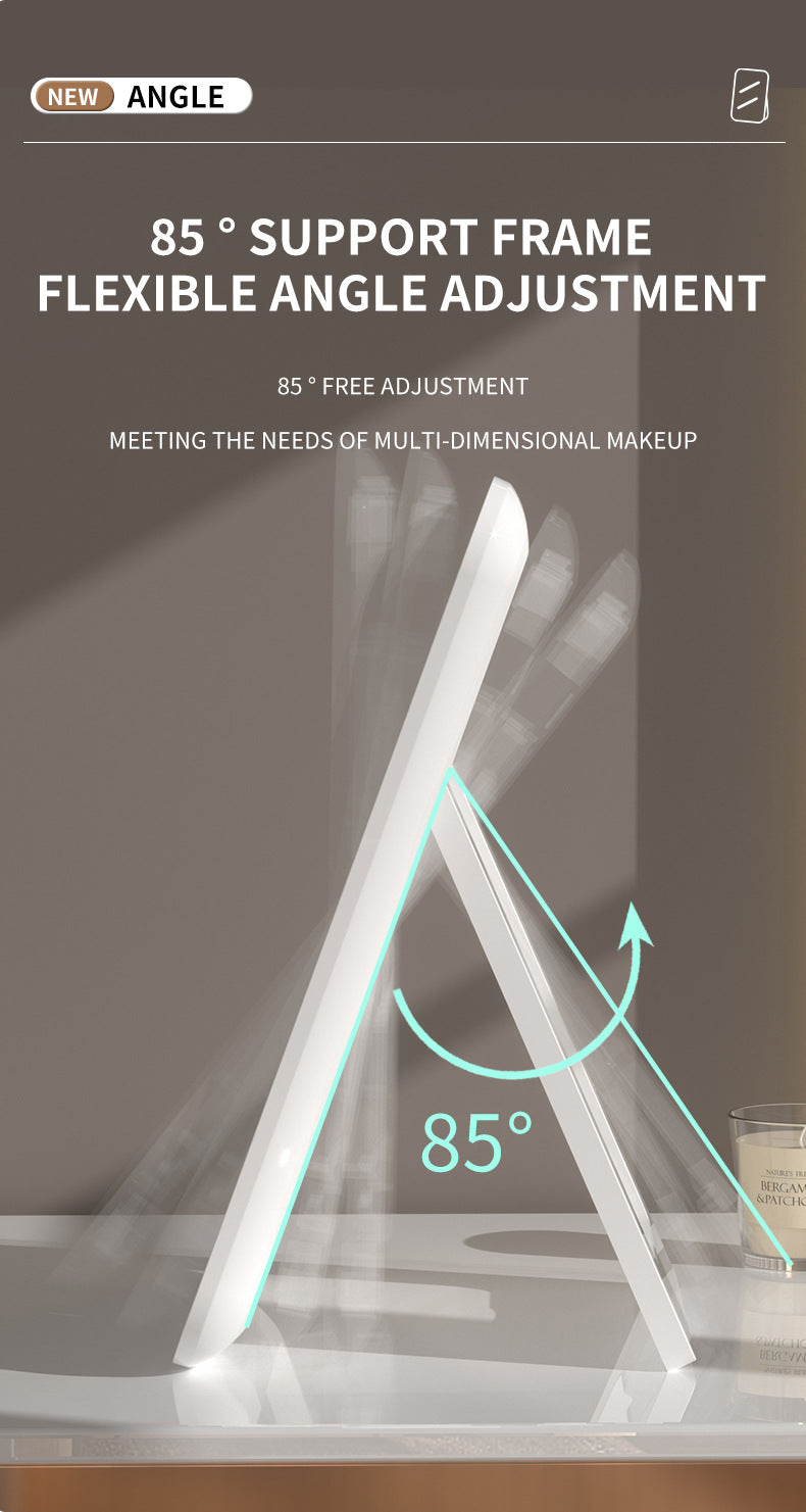 Flexible Angle Adjustment: Features an 85-degree rotating support bracket, allowing you to tilt and fix the mirror at your preferred angle for comfortable, multi-dimensional makeup application.