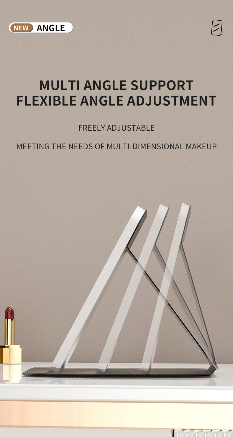 • Multi-Angle Adjustable Stand: The integrated stand offers flexible angle adjustment, allowing you to position the mirror for optimal viewing comfort, whether sitting or standing.
