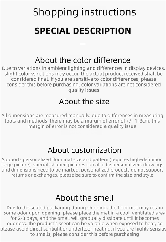 • Sizing Note: Due to manual measurement methods, please allow for a standard size deviation of 1-3 cm.