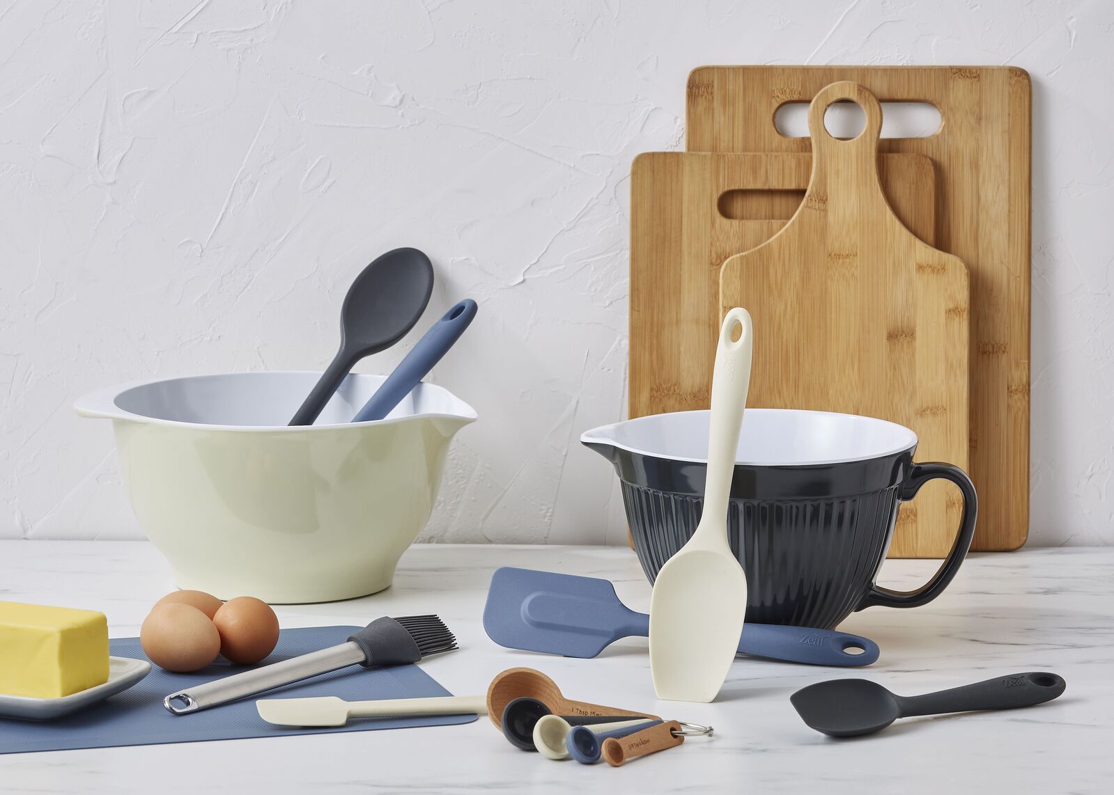 This Zeal Cosy Mini Silicone Baking Spatula come in 3 different assortedcolours is both stylish and practical. Crafted from silicone and stainless steel, the three assorted colours are cream, charcoal and dark blue. These spatulas are ideal for decorating cupcakes, blending butter and so many other food prep/baking tasks. Their small and flexible paddle-shaped heads are perfectly designed for precise cake decoration, sugar work and spreading icing. Enrich your kitchen with this stylish Cosy Mini Silicone Baking Spatula from Zeal.